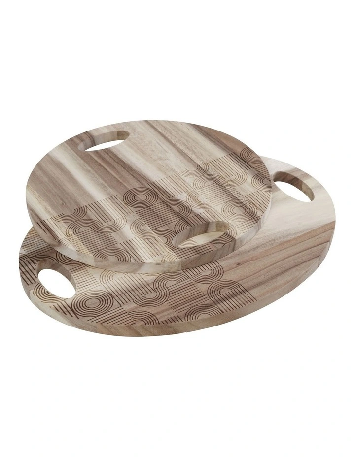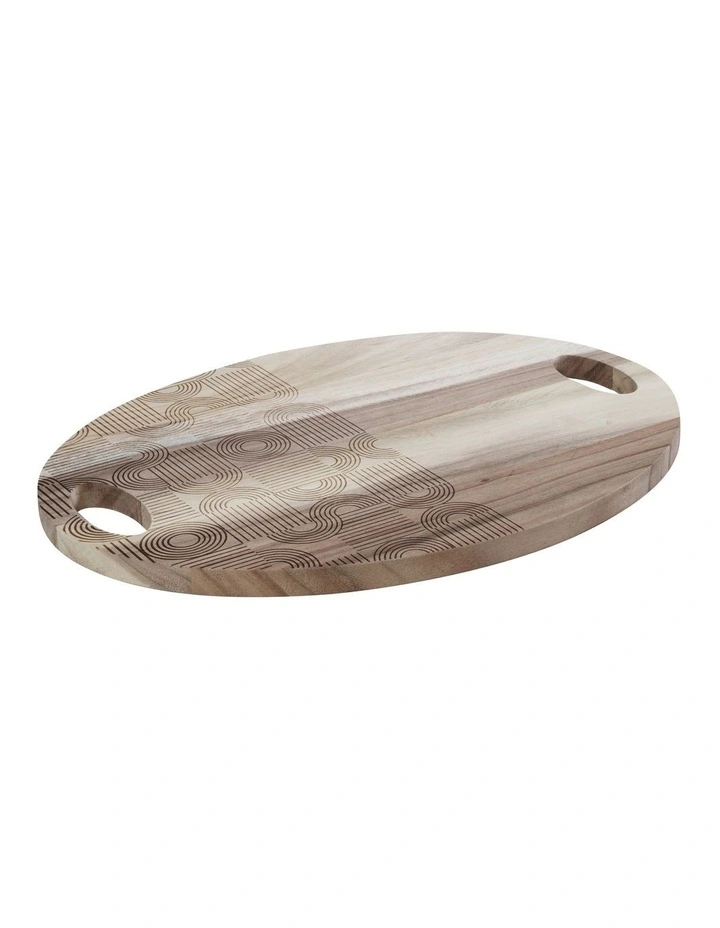 The Arc oval serving board makes entertaining easy. Crafted from beautiful acacia wood, it features an exclusive embossed design inspired by Celtic symbols and Nordic runes. Generously sized with a contemporary oval shape, it’s the perfect way to serve grazing plates, cheese boards, dips and canapes. This unique serving board is the ideal accessory for parties, dinners and drinks, with an earthy feel that will complement any home.