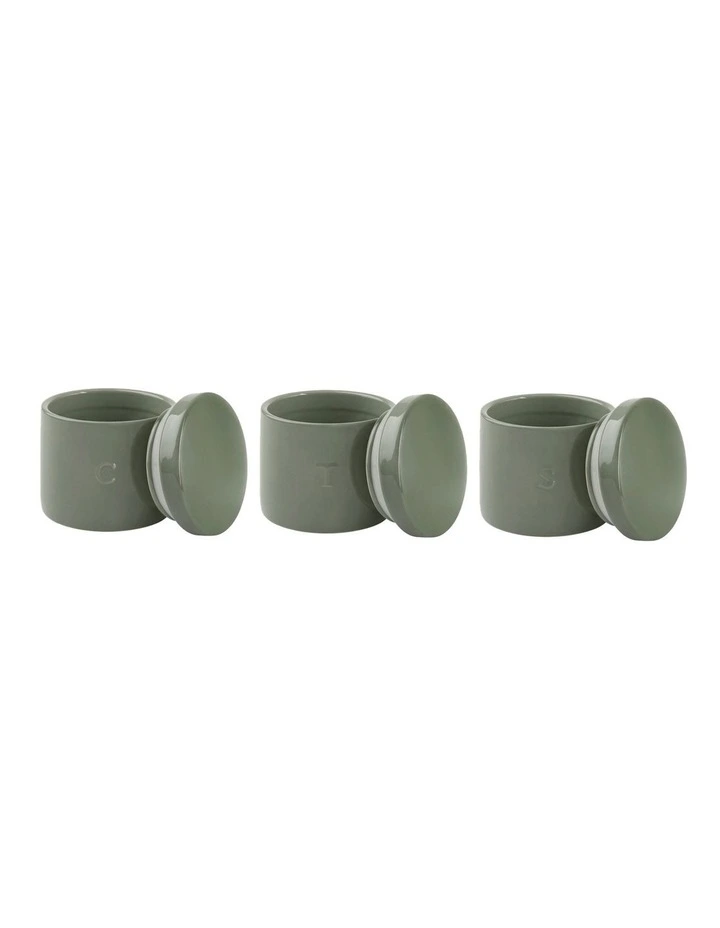 These Epicurious 600ml canisters bring fresh style to the kitchen, with a contemporary design and a soft sage finish. Made from quality porcelain, this set of three canisters is the answer to all your kitchen storage needs perfect for pantry staples and snacks. A must-have for any home chef, these handy canisters are a versatile and practical addition to your kitchen.