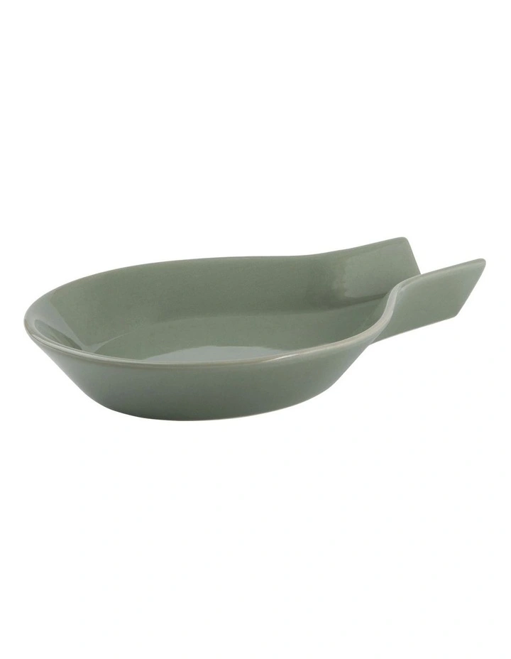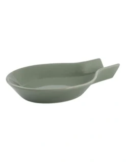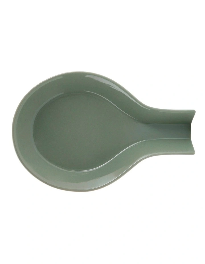 The sage Epicurious spoon rest is a must-have for any home chef. Perfect for protecting your stovetop and surfaces from drips and splashes, this essential accessory is designed with a flat base and a high rim guard. This stylish spoon rest has a crisp, modern look and a soft sage glaze that coordinates beautifully with the rest of the Epicurious collection. A thoughtful and unique gift idea.