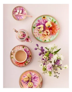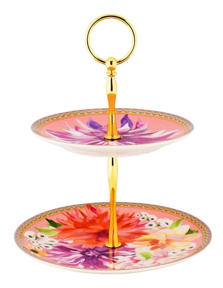 This pink Dahlia Daze two-tiered cake stand brings luxury to the table. Part of the Teas & Cs collection, it features a sumptuous design inspired by fashion and nature with embellishments in real gold. This porcelain cake stand is designed for presenting cakes, sweets and savouries beautifully. Perfect for anything from morning teas to dinner parties, it makes a statement centrepiece for your dessert spread.