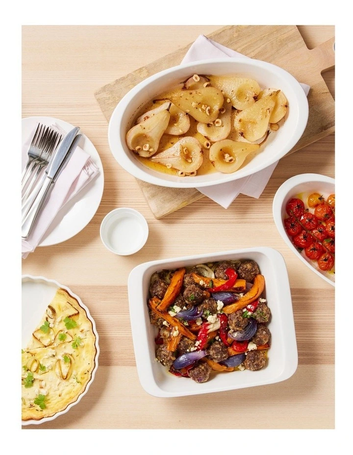 The White Basics 31x20cm oval baker is essential cookware for any home chef. Made from quality porcelain with a high-gloss finish, it has an elegant simplicity that will complement any kitchen. This popular baker is generously sized and has a contemporary oval shape – the perfect choice for cooking your favourite pasta bakes, desserts and oven-to-table meals. Simple and stylish, it’s a wonderful addition to your White Basics collection.
